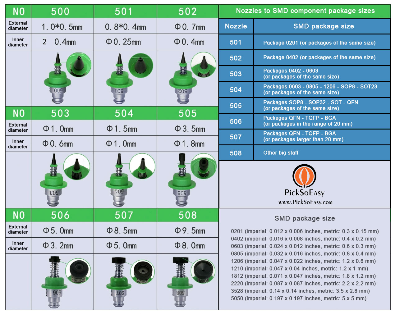 5 Juki-like nozzles are provided: #502 - #503 - # 504 (2) - # 505.
