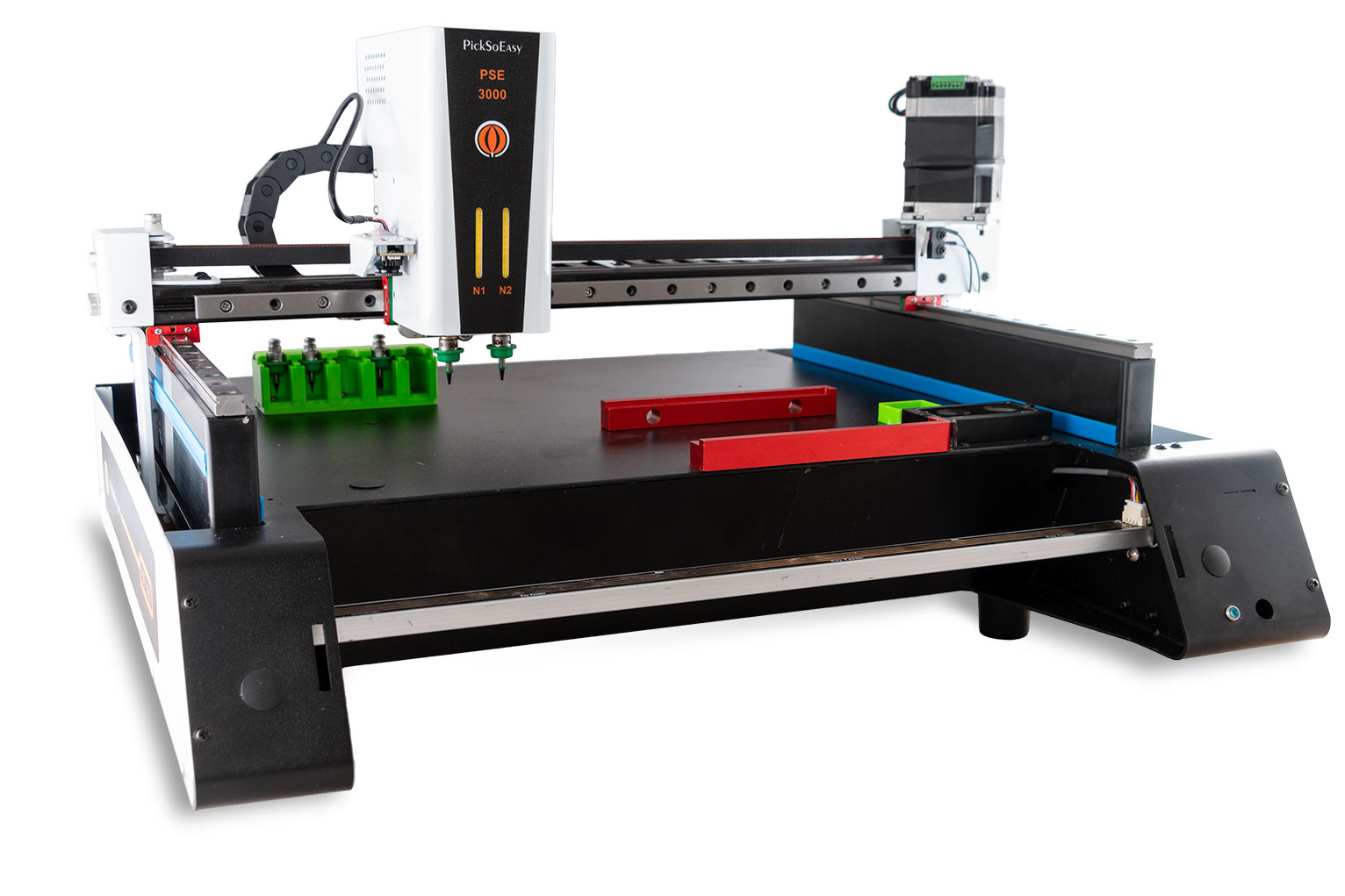 The PSE-3000 is equipped with a communication rail for automatic electronic feeders. Each feeder controls 3 strips of components. You can add 12 electronic feeders. It means you will have 36 strips of SMD components available. Plus, if you need, 20 plastic racks with magnets.